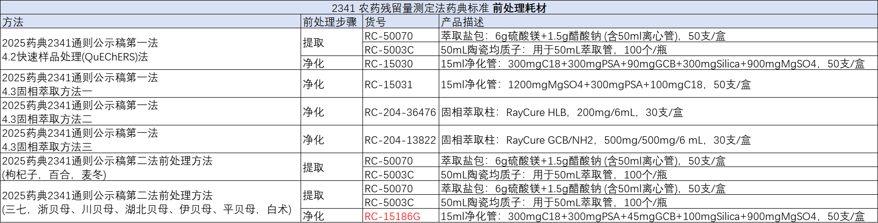 2341 農(nóng)藥殘留量測定法藥典標準 前處理耗材解決方案