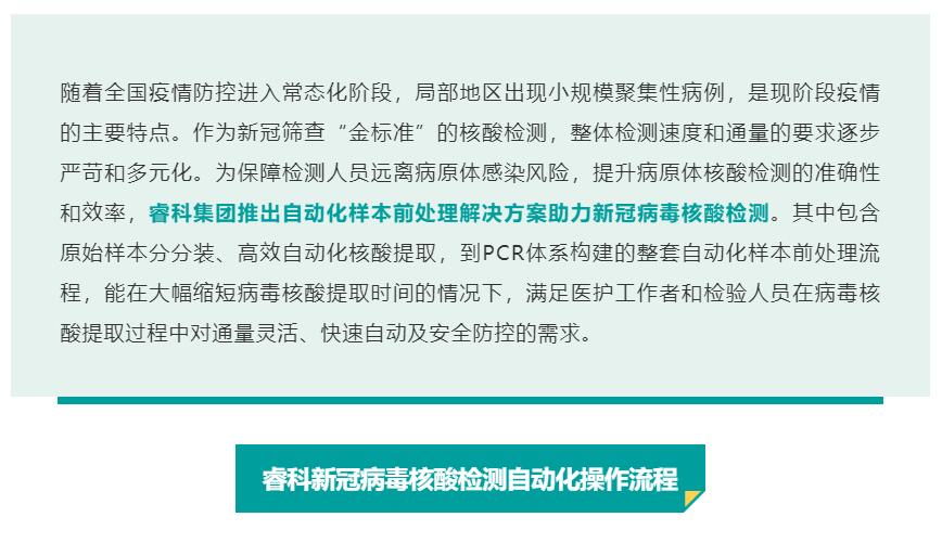 重磅出擊!睿科自動(dòng)化樣本前處理解決方案助力新冠病毒核酸檢測