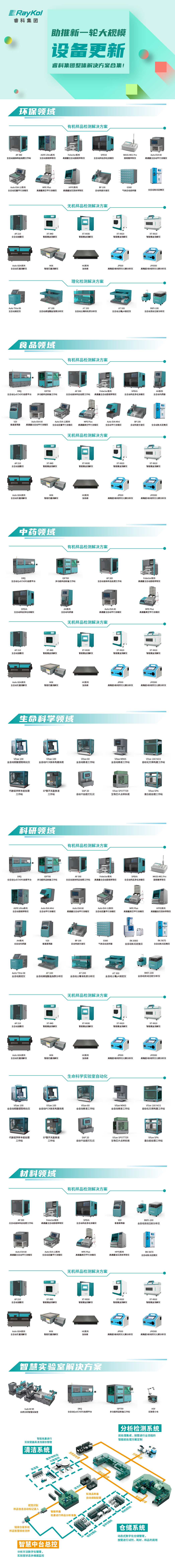 為幫助相關機構高效完成設備升級,推進檢驗檢測設備高端化、智能化、綠色化發展,睿科集團準備了環保、食品、中藥、生命科學、科研、材料和智慧實驗室相關解決方案,一起來看看吧!