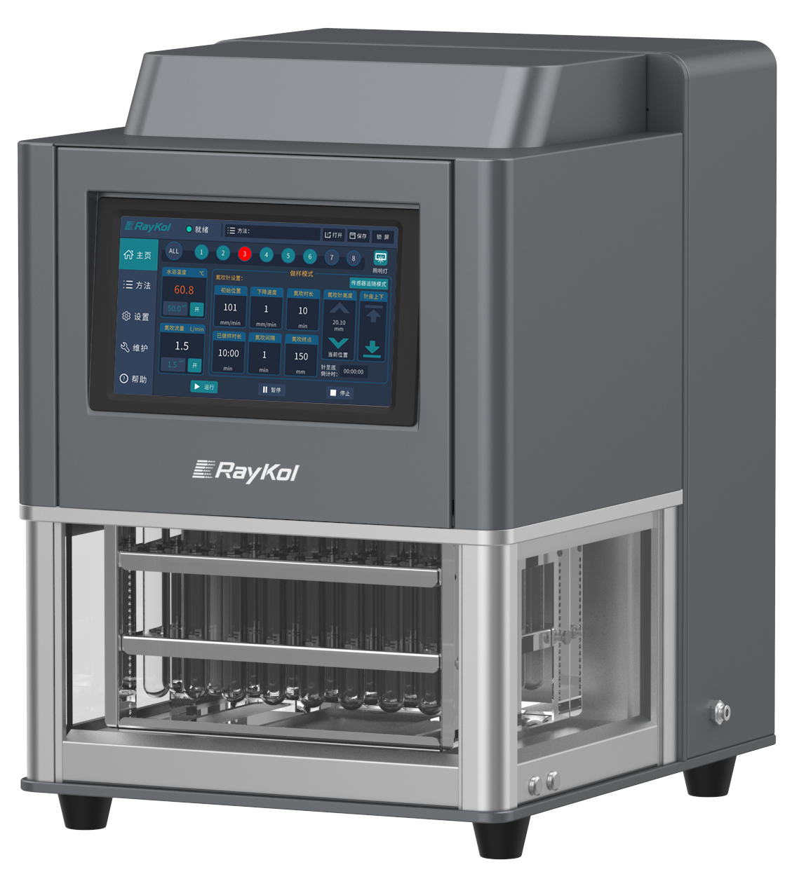 實驗采用睿科EVA 80全自動平行濃縮儀,可以實現(xiàn)80個樣品同時濃縮,提高濃縮效率的同時,儀器可實現(xiàn)針隨液面的高度下降,加快濃縮速度,節(jié)約氮氣成本;人性化的可視化窗口設(shè)計可以看到樣品濃縮剩余體積,避免吹干。