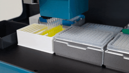 Vitae 100全自動PCR體系構建系統具備10個基礎盤位,適用于各種PCR反應的體系構建,可從不同規格的離心管(0.2mL、1.5mL、2mL、5mL等)、試劑瓶、試劑槽中移液至PCR 8連排管、PCR 96孔板、PCR 384孔板及深孔板等;移液精確,減少人工干預帶來的誤差,保證結果重復性和穩定性,可應用于新冠檢測體系構建、病原微生物檢測體系構建及各種利用PCR技術的檢測項目。